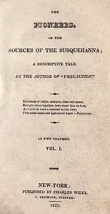 The Pioneers, or The Sources of the Susquehanna; a Descriptive Tale is a historical novel by American writer James Fenimore Cooper. It was the first of five novels published which became known as the Leatherstocking Tales. Published in 1823, The Pioneers is the fourth novel in terms of the chronology of the novels' plots.