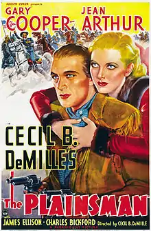 The Plainsman is a 1936 American Western film directed by Cecil B. DeMille and starring Gary Cooper and Jean Arthur. The film presents a highly fictionalized account of the adventures and relationships between Wild Bill Hickok, Calamity Jane, Buffalo Bill Cody, and General George Custer, with a gun-runner named Lattimer (Charles Bickford) as the main villain. The film is notorious for mixing timelines and even has an opening scene with Abraham Lincoln setting the stage for Hickok's adventures. Anthony Quinn has an early acting role as an Indian. A remake using the same title was released in 1966.