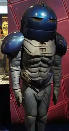 The Sontarans in their helmets, as shown at the Doctor Who Experience.