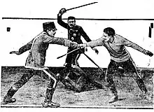 A dwarf assassin (John George) in Michael's pay tries to garrot Rassendyll, but Sapt interrupts him before he can finish the job. The would-be killer mistakenly signals to an anxiously waiting Michael that the deed is done, and the duke hastens to Zenda to quietly dispose of the real king. However, Rassendyll was only rendered unconscious. When von Tarlenheim arrives with his news, the three men chase after Michael.
