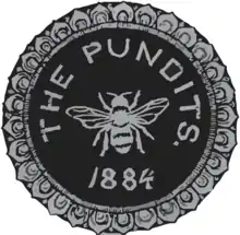 ![]() The logo of the Pundits, as made in 1884 | |