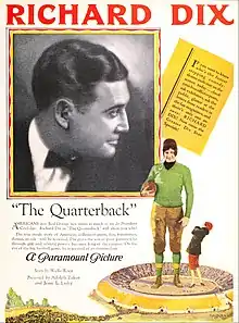 The Quarterback is a 1926 American comedy silent film directed by Fred C. Newmeyer and written by William Slavens McNutt, W. O. McGeehan and Ray Harris. The film stars Richard Dix, Esther Ralston, Harry Beresford, David Butler, Robert W. Craig and Mona Palma. The film was released on October 11, 1926, by Paramount Pictures.[1][2]