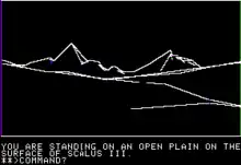 The game is represented by still black and white line images accompanied by short text descriptions, and controlled by means of two word text commands.[3] The player searches the derelict Martian spacecraft Queen of Phobos for the "Mask of Kuh-Thu-Lu" while avoiding or killing the four looters also searching for the mask.[4][5]