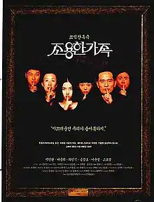 The Quiet Family (Korean: 조용한 가족; RR: Joyonghan Gajok) is a 1998 South Korean black comedy horror film directed by Kim Jee-woon. The story centers on a family who owns a hunting lodge in a remote area, whose customers always happen to end up dying. Among the film's main cast are pre-stardom Choi Min-sik and Song Kang-ho.