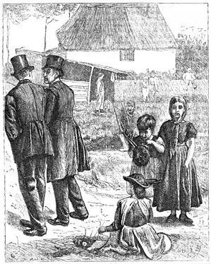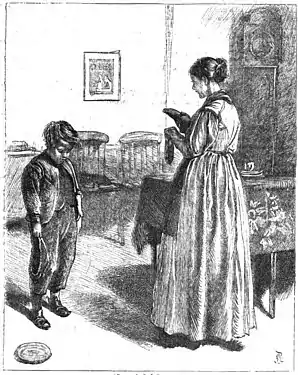 The following three-quarter page illustrations by George John Pinwell (26 December 1842 – 8 September 1875) for Volume II (September 1866 – September 1867) of the third series (Toned Paper Series) of the magazine are typical. Each of these illustrations appeared with the title of the magazine above, and the start of an article below. The illustration was not necessarily related to the following article, but included a page number showing what article the illustration related to. Illustrations by courtesy of the Hathi Trust.[16]