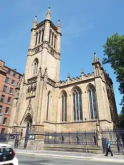The Ramshorn was originally built as St David's Parish Church in 1824, replacing a church that had stood on the site since 1720.[1] Now a category A listed building,[2] it was designed by English architect Thomas Rickman in the Gothic Revival style.[2] This was the only Scottish church he designed.