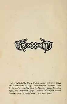 The first printing in 1894 consisted of three volumes containing a total of 51 chapters. The three volumes were reprinted in a single volume in 1895, with many further single-volume reprints in the following years.
