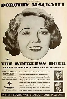 The Reckless Hour is a 1931 pre-Code film directed by John Francis Dillon and produced and distributed by First National Pictures.[1][2]
