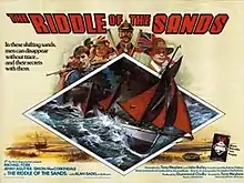 The Riddle of the Sands is a 1979 British spy thriller cinema film based upon the novel of the same name written by Erskine Childers. Set in 1901, and starring Michael York, Simon MacCorkindale and Jenny Agutter, it concerns the efforts of two British yachtsmen to avert a plot by the German Empire to launch a military seaborne invasion of the United Kingdom.[2]