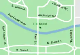 ![]() The Rock's location on campus | |