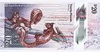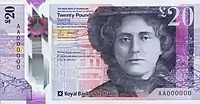 The Royal Bank of Scotland £20 note is a banknote of the pound sterling. It is the third largest denomination of banknote issued by The Royal Bank of Scotland. The current polymer note, first issued in 2020, bears the image of Catherine Cranston on the obverse and a vignette depicting a pair of Red Squirrels on the reverse.
