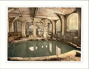 One of the main arguments that surround the poem is that of which city is depicted in the poem. Heinrich Leo first suggested in 1865 that the city depicted was the city of Bath. Others have suggested Chester, Hadrian's Wall, Babylon of the Apocalypse, or that it does not describe any one city in particular.[3] However, the general consensus among analysts has been that Bath was the city the author was describing throughout the poem.[4] There are three features distinctly referred to in the poem that when used conjunctively could only be in the city of Bath: the hot spring mentioned at the end of the poem (as opposed to artificially heated water), the mention that there were many bathing halls, and the mention of a circular pool also at the end of the poem. Furthermore, the description of the decay matches Bath's probable appearance in the first half of the eighth century.[5]