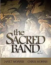 For nearly a decade, Janet Morris wrote stories and novels, some with Chris Morris, about Tempus and his Sacred Band. Morris's first Sacred Band of Stepsons novel, Beyond Sanctuary, was the first "authorized" Thieves' World spin-off novel and was published in hardcover by Baen Books and then the Science Fiction Book Club. Beyond Sanctuary was reviewed by Library Journal[2] and by Publishers Weekly.[3] Next came "Beyond the Veil," also a Baen hardcover and Science Fiction Book Club Selection. Beyond the Veil was reviewed by Kirkus Reviews[4] and by Fantasy Review.[5] The Baen hardcover and Science Fiction Book Club publication of Beyond Wizardwall completed publication of the trilogy. Three additional Stepsons novels and a short story per year followed until 1990, when the Morrises ceased production until 2010. In the latest Stepsons novels, The Sacred Band (2010), The Fish the Fighters and the Song-girl (2012), the Stepsons rescue twenty-three couples of the historical Sacred Band of Thebes at the Battle of Chaeronea and bring them, with their Greek Fates and gods, to Sanctuary and out again. The Sacred Band and eight other related novels were reviewed by Black Gate.[6]