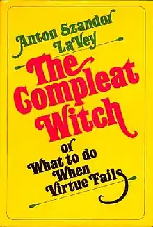 The book was first published as The Compleat Witch, or What to Do When Virtue Fails, in 1971 by Dodd, Mead & Company.[3] The first paperback edition was released by Lancer Books in 1972. It was republished by Feral House in 1989 with an introduction by Zeena LaVey, wherein it was retitled The Satanic Witch; and again in 2003 with a new introduction by Peggy Nadramia and afterword by Blanche Barton. The book concludes with a bibliography of over 170 books on topics of psychology, anthropology, sociology, biology and volumes on sexuality and body language.[4] The publisher describes the book as "...undiluted Gypsy lore regarding the forbidden knowledge of seduction and manipulation."[5]