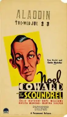 The Scoundrel is a 1935 drama film directed by Ben Hecht and Charles MacArthur, and starring Noël Coward, Julie Haydon, Stanley Ridges, Rosita Moreno and Lionel Stander. It was Coward's film debut, aside from a bit role in a silent film. It deals with supernatural redemption in a way rather similar to Ferenc Molnár's Liliom, and drew inspiration from the life of publisher Horace Liveright, who had died in September 1933.