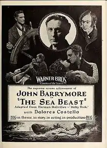 The Sea Beast is a 1926 American silent drama film directed by Millard Webb, starring John Barrymore, Dolores Costello and George O'Hara.[2] The film was a major commercial success and one of the biggest pictures of 1926 becoming Warner Brothers' highest grossing film. The Sea Beast is the first adaptation of Herman Melville's 1851 novel Moby-Dick,[2] a story about a monomaniacal hunt for a great white whale. However, the film alters the novel's plotline by establishing prequel and sequel elements that are not in the original story—such as the romancing of Esther and Ahab's safe return, respectively—and substitutes a happy ending for Melville's original tragic one. Some of the characters in the film do not appear in Melville's original novel.