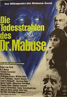 The Secret of Dr. Mabuse or The Death Ray of Dr. Mabuse (German:Die Todesstrahlen des Dr. Mabuse) is a 1964 Franco-German-Italian international co-production science fiction Eurospy crime film directed by Hugo Fregonese and Victor De Santis and starring Peter van Eyck, O.E. Hasse and Yvonne Furneaux. It was a co-production between France, Italy and West Germany. The film was the last in a series of films which had revived the Weimar era character Doctor Mabuse.[2]