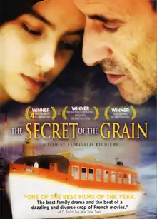 The Secret of the Grain holds an 83/100 on Metacritic[2] and a 92% rating on Rotten Tomatoes, with the critical consensus stated by the latter aggregator as, "A complex portrait of an immigrant family, The Secret of the Grain is a sprawling, intimate film with many fine performances."[3] The film appeared on several critics' top ten lists of the best films of 2008. A. O. Scott of The New York Times named it the 3rd best film of 2008,[4] Andrew O'Hehir of Salon named it the 6th best film of 2008,[4] and Scott Foundas of LA Weekly named it the 7th best film of 2008 (along with A Christmas Tale).[4]