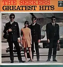 The Seekers' Greatest Hits is a compilation album released in Australia by EMI's Columbia label (Catalogue No. SCXO 7830) in July 1968 on the break-up of The Seekers. This album did not include "I'll Never Find Another You" or "A World of Our Own" which were previously released on The Seekers Sing Their Big Hits (1965) W&G 25/2512. The album peaked at number 1 for 17 weeks and was the highest selling album in Australian in 1968. It was also the first time an Australian artist had peaked at number 1 on the Australian album chart.[1]