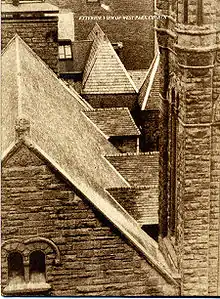 - West-Park Presbyterian Church had been constructed in 1890, "...in the French Romanesque style, with rock-faced Longmeadow brownstone trimmed with Lake Superior red stone," according to The New York Times of 1889, as quoted by Christopher Gray in his article about the church's struggle to fight landmark status in the late 1980s, "STREETSCAPES: West-Park Presbyterian; An 1890 West Side Church Fighting Landmark Status," The New York Times, January 10, 1988.