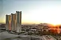 Construction of the first tower was underway later in 2004, near the corner of Harmon Avenue and Koval Lane. Construction of the second tower was expected to begin in early 2005.[5] Excavation for the final tower was underway in September 2005, three months earlier than initially planned. Construction began early after more than half of the tower's 576 units were sold.[4] The first tower was topped off on October 7, 2005,[6] and was opened in May 2006.[7] The second tower was finished later that year,[8] and the third was scheduled to open in July 2007.[9]