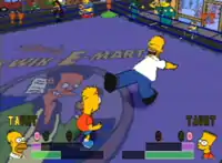 The game is loosely based on professional wrestling games, but more closely resembles a beat-'em up. The game can be played in two modes: a tournament style single-player game or a grudge match where two players can interact. The matches take place in ten different detailed 3D locations from Springfield, such as the Simpsons' house, the Springfield Nuclear Power Plant, the Kwik-E-Mart, and Moe's Tavern.[1] Letters float around in the wrestling ring, and if a wrestler collects enough of them, they can taunt and temporarily become invincible.[2] A round ends when one wrestler pins their opponent for a three count. Two rounds are needed to win a match.[3]