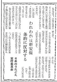 - May 1960: Statement of the Executive Committee of the Festival opposing the renewal of Treaty of Mutual Cooperation and Security between the United States and Japan.[3]