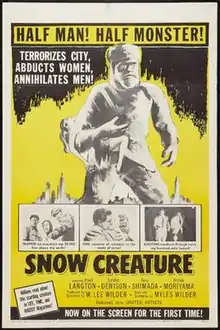 The Snow Creature is a 1954 American science fiction-horror film produced and directed by W. Lee Wilder, for Planet Filmplays Inc., written by Myles Wilder, and starring Paul Langton.