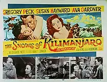 The Snows of Kilimanjaro is a 1952 American Technicolor film based on the 1936 short story of the same name by Ernest Hemingway. It is directed by Henry King, written by Casey Robinson, and starred Gregory Peck as Harry Street, Susan Hayward as Helen, and Ava Gardner as Cynthia Green (a character invented for the film). The film's ending does not mirror the story's ending.[5]