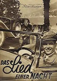 The Song of Night (German: Das Lied einer Nacht) is a 1932 German musical comedy film directed by Anatole Litvak and starring Jan Kiepura, Magda Schneider and Fritz Schulz.[1]