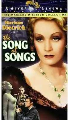The Song of Songs is a 1933 American Pre-Code romantic drama film starring Marlene Dietrich as a naive German peasant named Lily who moves to Berlin and suffers from a considerable amount of heartache. This particular version of the film was based on the 1908 novel by Hermann Sudermann, Das Hohe Lied. The novel's title, which translates to English as "The High Song," does indeed refer to the Song of Solomon, which is often described in German as "Das Hohe Lied der Liebe." However, that is not the only possible inference. "HoheLied" has been translated as "ode" "hosannas" "praises" and used in purely secular as well as religious contexts.[1] Most telling in this case is the use in German of the entire phrase to describe the "great song of love" or "ode to love" in Paul's First Epistle to the Corinthians. This creates a double layer of meaning to the title of the novel in German, one that could not be duplicated in an English rendition.