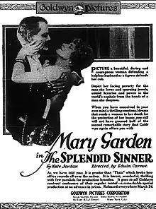 The Splendid Sinner is a lost[1] 1918 American silent World War I drama film directed by Edwin Carewe and starring Opera star Mary Garden. It was produced and released by Goldwyn Pictures.[2][3]
