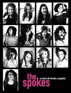 The Spokes is the first and premier all-female collegiate a cappella group created by Jaclyn Cohen and the Grammy nominated country artist, Cam (singer) Ochs at the University of California, Davis in 2004. They have taken performance tours throughout the West Coast, stopping in places like Portland, Los Angeles, Berkeley, Santa Cruz, and San Francisco. Their goal for the academic year is to showcase their evolved sound and unique style at various a cappella shows, ICCA, and finally their annual a cappella showcase, HellaCappella, which for the past few years has had sold out the Robert & Margrit Mondavi Center for the Performing Arts for the past few years. The Spokes have won several awards at the International Championship of Collegiate A Cappella over the years, including Best Choreography on 2011, Best Beatboxing in 2016, 2nd Place at the Northwest Semifinals in 2016, and Best Choreography in 2018.