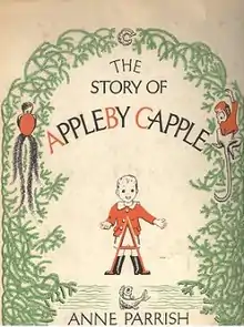 The Story of Appleby Capple is a complex children's alphabet book by Anne Parrish in which alliterative narrative, with each chapter focusing on a different letter, is used to tell a story. Appleby Capple is a five-year-old on his way to Cousin Clement's 99th birthday party; he has a number of adventures looking for the perfect present: a Zebra butterfly. The text is accompanied by many cartoon-like illustrations by the author.[1] The book was first published in 1950 and was a Newbery Honor recipient in 1951.[2]
