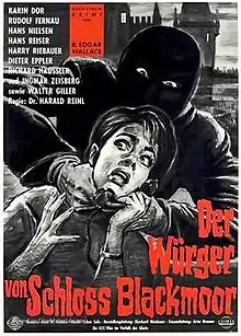 The Strangler of Blackmoor Castle (German: Der Würger von Schloß Blackmoor) is a 1963 West German thriller film directed by Harald Reinl and starring Karin Dor, Harry Riebauer and Rudolf Fernau.[1] It was based on a novel by Bryan Edgar Wallace and was part of a trend of English-set thrillers inspired by Rialto Film's series of adaptations of his father Edgar Wallace's work.