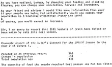 In the first segment of the game, the player plays a series of rounds—limited to 30 in the second version of the game—in which they are given information about the current population, acres of farmland, number of farmers, grain harvested that round, and stored grain. The rounds start in 3500 BC, and are meant to represent seasons. The player then selects how much grain will be used as food, seed for planting, and storage. After making their selections, the game calculates the effect of the player's choices on the population for the next round. Additionally, after each round, the game selects whether to report several events. The city may be struck with a random disaster, such as a fire or flood, which destroys a percentage of the city's population and harvest. Independent of disasters, a percentage of the stored grain may also be lost to rot and rats. Additionally, the game may report a technological innovation which has a positive effect on subsequent rounds, such as reducing the amount of grain that may spoil or reducing the number of farmers needed for each acre of land. Several of these innovations require the player to have first "exhibited some good judgement", such as by adequately feeding their population for multiple rounds.[1]