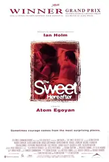 The Sweet Hereafter won three awards at the 1997 Cannes Film Festival: the FIPRESCI Prize, the Grand Prize of the Jury, and the Prize of the Ecumenical Jury.[48] This was the highest honour won at Cannes for a Canadian film and made Egoyan the first Canadian to win the Grand Prix, followed by Xavier Dolan with It's Only the End of the World in 2016.[49][50]