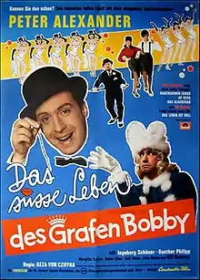 The Sweet Life of Count Bobby (German: Das süsse Leben des Grafen Bobby) is a 1962 Austrian musical comedy film directed by Géza von Cziffra and starring Peter Alexander, Ingeborg Schöner and Gunther Philipp. It was the second in a trilogy of films featuring Alexander in the character of Count Bobby.[1] It was followed by Count Bobby, The Terror of The Wild West in 1966.