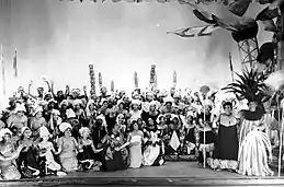 The Swing Mikado is a musical theatre adaptation, in two acts, of Gilbert and Sullivan's 1885 comic opera, The Mikado, with music arranged by Gentry Warden. It featured a setting transposed from Japan to a tropical island. The show was first staged by an all-black company in Chicago, Illinois, in 1938. Later that year, it transferred to Broadway. Other changes from the original work included the re-scoring of five of the musical numbers in "swing" style, the insertion of popular dance sequences including The Truck and the Cakewalk, and the rewriting of some of the dialogue in an attempt at black dialect. Other than that, the original dialogue and score of 1885 were used.[1]