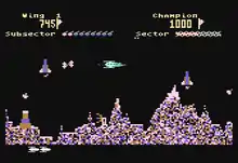 The Tail of Beta Lyrae is a horizontally scrolling shooter for the Atari 8-bit family published in 1983 by Datamost. It was designed and implemented by Philip Price with music by Gary Gilbertson. Price and Gilbertson later collaborated on the Alternate Reality games.[1] The game is heavily inspired by Konami's 1981 Scramble arcade game.