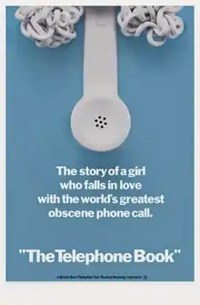 The Telephone Book is a 1971 American independent sexploitation comedy film[4][5] written and directed by Nelson Lyon and starring Sarah Kennedy, along with Norman Rose, James Harder, and Jill Clayburgh. The film follows a solitary but lustful woman named Alice, who falls in love with a stranger who makes obscene phone calls to her. The film is satirical in nature, and often breaks the fourth wall.