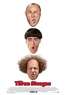 The Three Stooges (promoted as The Three Stooges: The Movie) is a 2012 American slapstick comedy film based on the film shorts from 1934 to 1959 starring the comedy trio of the same name. The film was produced, written and directed by the Farrelly brothers and co-written by Mike Cerrone. It stars Chris Diamantopoulos, Sean Hayes, and Will Sasso, re-creating the eponymous characters played by Moe Howard, Larry Fine, and Curly Howard.