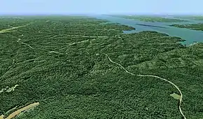 The Woodlands Trace National Scenic Byway, also known as "The Trace," is the major north–south roadway that traverses the Land Between the Lakes National Recreation Area in two counties in western Kentucky and northwestern Stewart County in northwest Middle Tennessee.[2] It is estimated to be 43.1 miles (69.4 km) in length. The road is part of the National Scenic Byway system.[3] Although it is not signed, it is listed on LBL's road logs as FD-100.[4]
