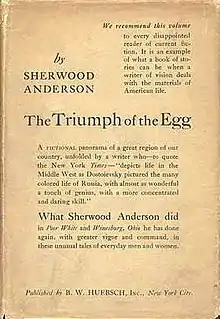 The Triumph of the Egg (full title: The Triumph of the Egg: A Book of Impressions from American Life in Tales and Poems) is a 1921 short story collection by the American author Sherwood Anderson. It was Anderson's third book to be published by B.W. Huebsch and his second collection after the successful short story cycle Winesburg, Ohio. The book contains 15 stories preceded by photographs of seven clay sculptures by Anderson's wife at the time, sculptor Tennessee Mitchell, that were inspired by characters in the book.