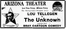 The Unknown is a 1915 American silent drama film produced by Jesse Lasky and distributed by Paramount Pictures. Directed by George Melford, it stars Lou Tellegen, Theodore Roberts, and Dorothy Davenport.[1][2]