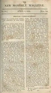 | Publisher | The New Monthly Magazine and Universal Register; London: H. Colburn, 1814–1820. Vol. 1, No. 63. |