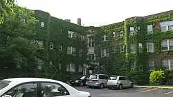The Varsity is a historic apartment building located at West Lafayette, Tippecanoe County, Indiana. It was built in 1928, and is a three-story, "L"-shaped, Tudor Revival style brick building. It has a limestone quoins and detailing, a Tudor-arched entrance, projecting pavilions, and semi-hexagonal projecting bays.[2]: 5–6