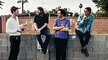 Originating as a solo project by Morphy, The Velveteins group was formed in 2014 after Morphy's extended trip in Australia during which he "fell in love with the psychedelic music and lush beaches of Australia".[2] The band's self-produced first effort, Fresh Claws EP, was released in 2014 and marked the first collaborative work by Morphy and Hiller. A second release, A Hot Second with the Velveteins, was produced and recorded by Lincoln Parish of Cage The Elephant in his home studio in Nashville, Tennessee.[3] This release received critical acclaim locally and internationally.[4][5] The band has played CMW in Toronto and has opened for high-profile indie acts such as Milo Greene, USS, and July Talk.[6][7] In 2015, the Velveteins' released A Hot Second with The Velveteins was nominated for an Edmonton Music Award.[8] In 2017, the band released the album Slow Wave and toured throughout Canada and the United States.[9]