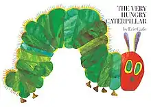 The Very Hungry Caterpillar is a children’s picture book, designed, illustrated, and written by Eric Carle. The book features a voracious caterpillar eating foodstuff before pupating and emerging as a butterfly. It has won many children’s literature awards and major graphic design awards.[1] Furthermore, it has sold upwards of 50 million copies worldwide[1], selling roughly a copy per thirty seconds since its publication.[1] The book has been lauded as “one of the greatest childhood classics of all time.”[2] Its ‘eaten’ holes and collage artwork were innovative for its time.[1] The book includes counting, days of the week, food, and butterfly’s life cycle which contribute to juvenile education. Nowadays, many books and products relate to Carle’s original work.