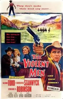 The Violent Men is a 1955 American Western film directed by Rudolph Maté and starring Glenn Ford, Barbara Stanwyck, Edward G. Robinson, Dianne Foster, Brian Keith, and May Wynn.[3][4][1][5] Based on the 1955 novel Smoky Valley by Donald Hamilton,[6][4] its storyline involves a ranch owner who comes into conflict with the land grabbing tactics of the big local family but whose own tense marriage threatens their stranglehold over the region.